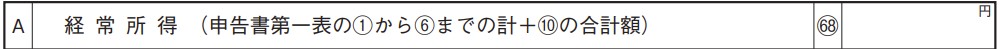 A「経常所得(68)」には、確定申告書 第一表の①から⑥までの合計額に、⑩の金額を足した金額を記入します。