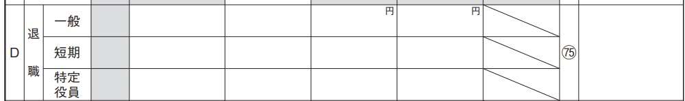 D:「退職(75)」の欄は、退職所得の源泉徴収票などをもとに作成しましょう。