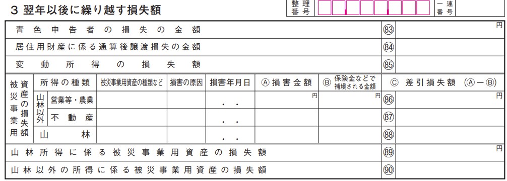翌年以後に繰り越す損失額があるなら、該当欄に金額を記入します。