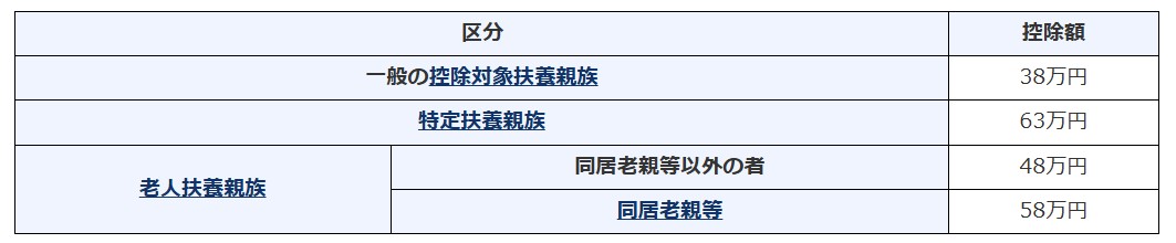 → | ・居住者と生計を一にする ・年齢19歳以上23歳未満の親族(配偶者、⻘⾊事業専従者として給与の⽀払を受ける⼈及び⽩⾊事業専従者を除く) ・合計所得⾦額が58万円以下(収入が給与だけの場合は年収123万円以下の⼈)なお、親族には児童福祉法の規定により養育を委託された、いわゆる里子を含みます。 |