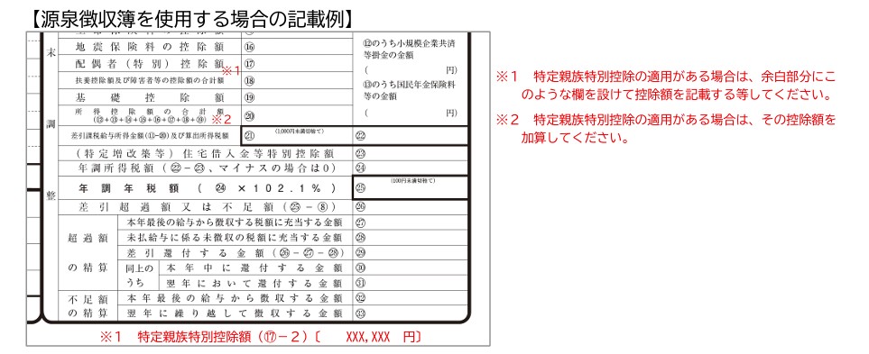 また、この控除を適用するには、従業員から新たに準備された「給与所得者の特定親族特別控除申告書」の提出を受ける必要があります。