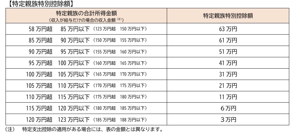 → 「特定親族特別控除」が適用され、所得に応じて控除額が段階的に減額 - 合計所得金額が123万円超(年収188万円超)の場合