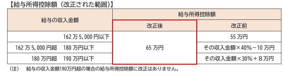 変更点①:基礎控除・給与所得控除の引き上げ