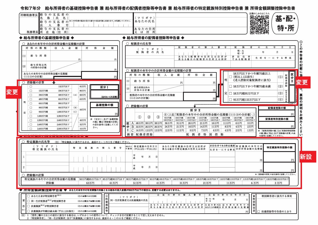 2025年の年末調整では、申告書の様式にも大きな変更がなされます。