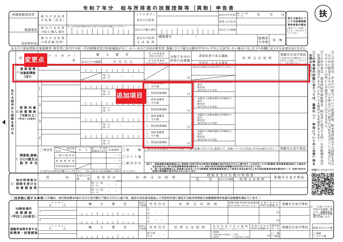 2025年の年末調整では、「扶養控除等(異動)申告書」(通称「マル扶」)にも様式変更が加えられています。
