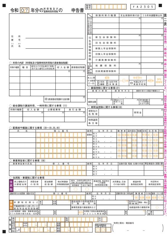 (引用元:国税庁「申告書第一表・第二表【令和7年分以降用】」©国税庁)