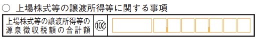 「上場株式等の譲渡所得等に関する事項」には、上場株式等の譲渡所得額等の源泉徴収税額の合計額を記入します。