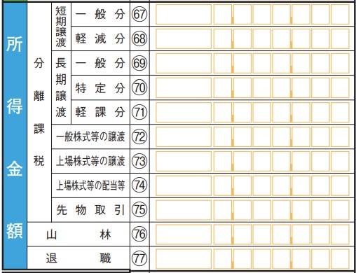 | (72)(73) 対応分(81) | 「一般株式等の譲渡(72)」「上場株式等の譲渡(73)」の対応分の所得金額 |