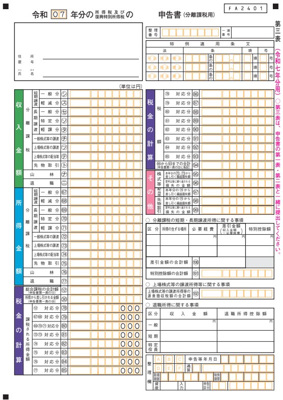 (引用元:国税庁「申告書第一表・第三表【令和7年分以降用】」©国税庁)