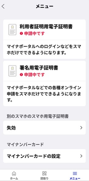 「利用者証明用電子証明書」と「署名用電子証明書」を申請