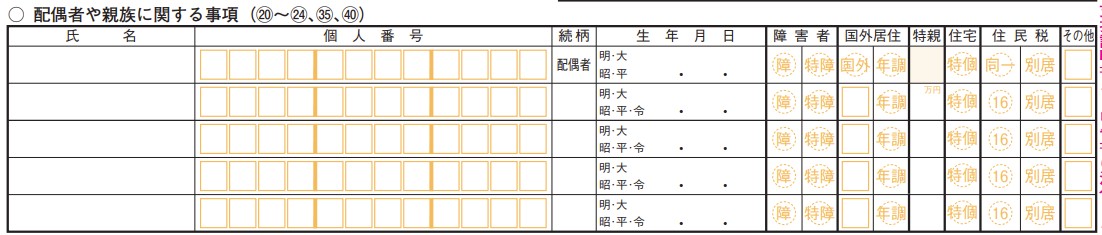 「特親」欄(特定親族特別控除)の新設: 確定申告書第2表の「配偶者や親族に関する事項」に、新設された特定親族特別控除を適用するための記載欄が追加されています。大学生の子がいる場合などは、ここを正確に記載することで、前述した段階的な控除が適用されます。