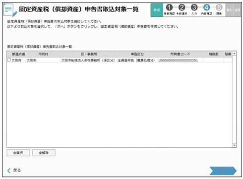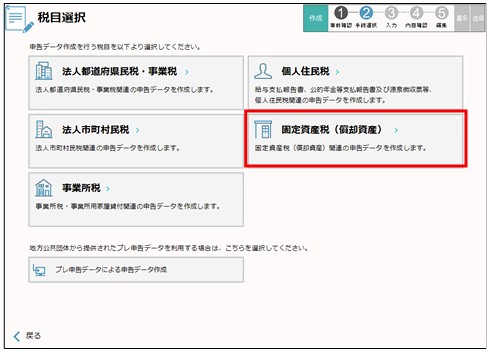 択」画面で「固定資産税(償却資産)」をクリックします。
