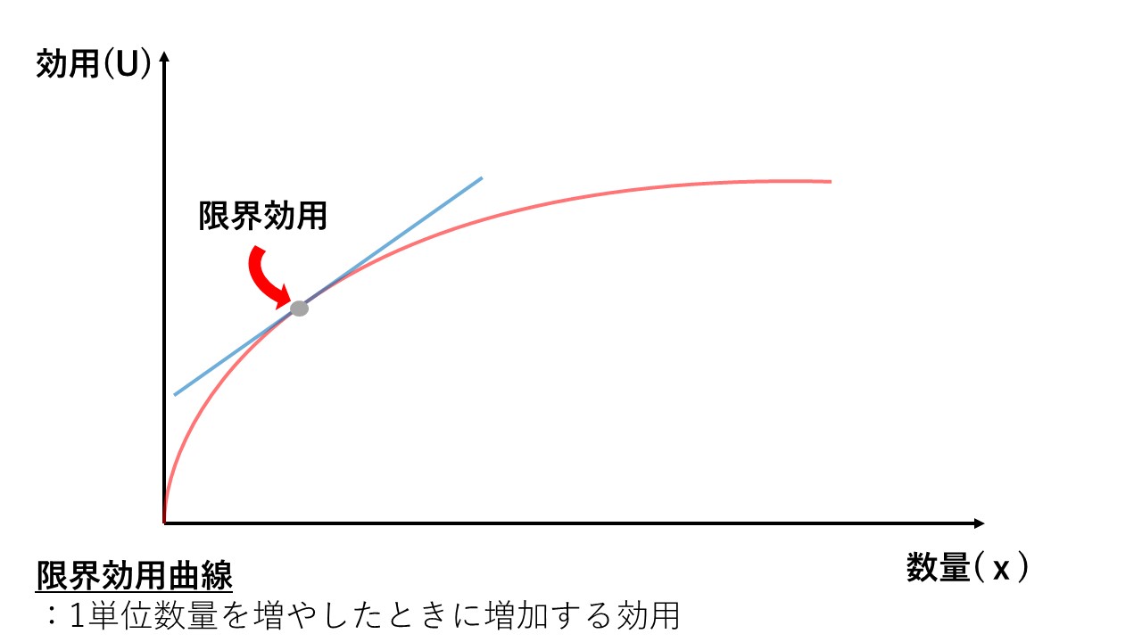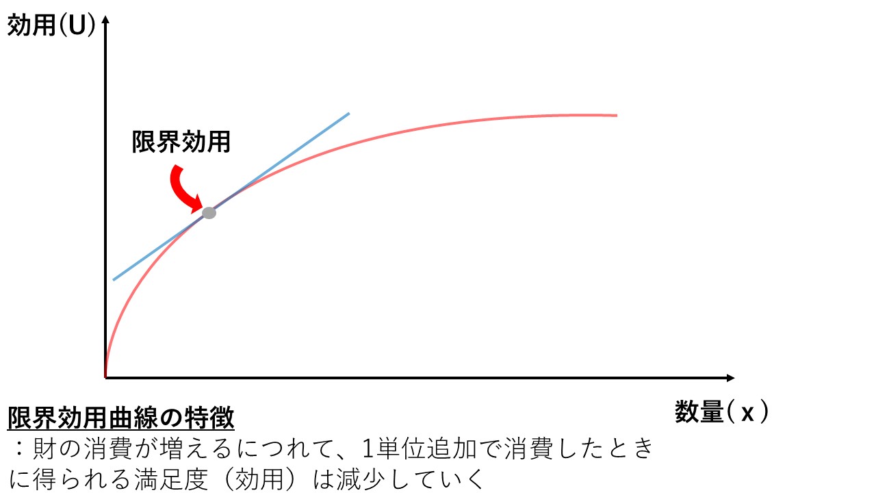 縦軸に効用(=満足度)、横軸に数量をあらわしたこの図。