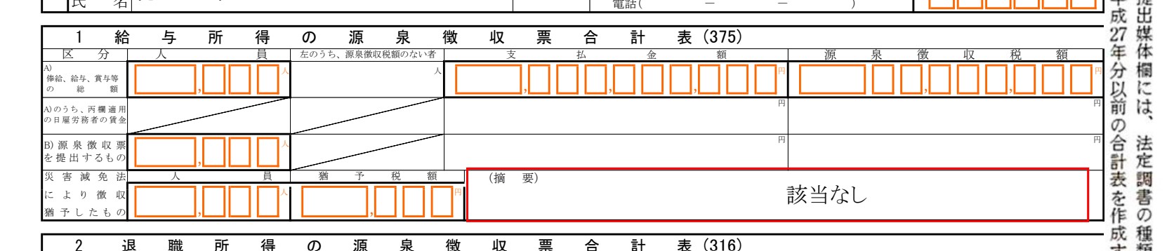 なので、提出の必要がないものは法定調書合計表の方で「該当なし」とすれば終わりです。