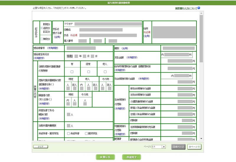 すでに給与・人事労務ソフトで源泉徴収票を作成している場合は、それを用意して転記しましょう。