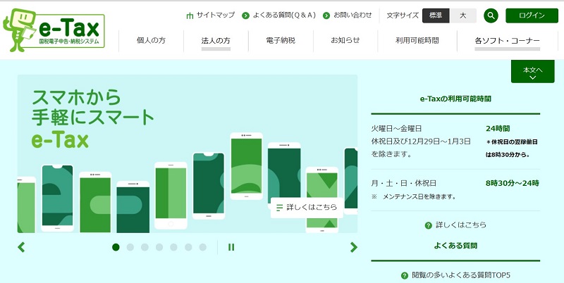それではWEB版のe-taxを利用して給与所得の源泉徴収票等の法定調書と支払調書を電子申請する方法をご紹介します。