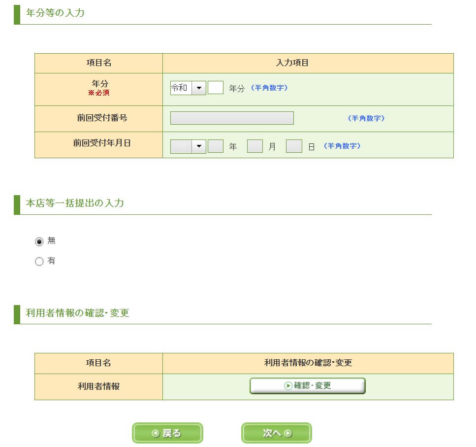本店等の一括提出の入力では、本店のみであれば無にします。