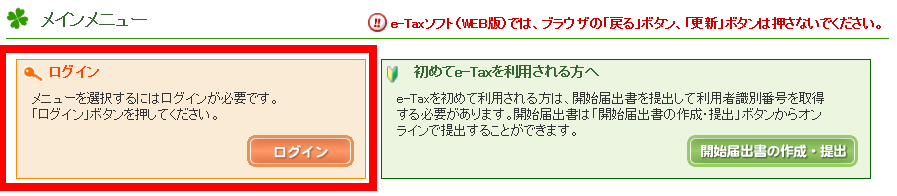 次に、WEB版のe-Taxソフトにてログインして初期登録を行っていきます。