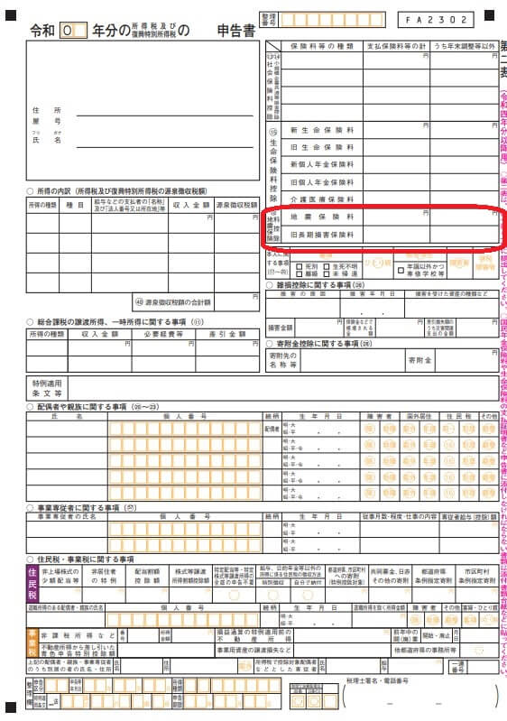 いくつかの地震保険に加入している場合は、それぞれ別に記載します。その際には、地震保険料控除証明書も必要になるので書類と一緒に提出しましょう。