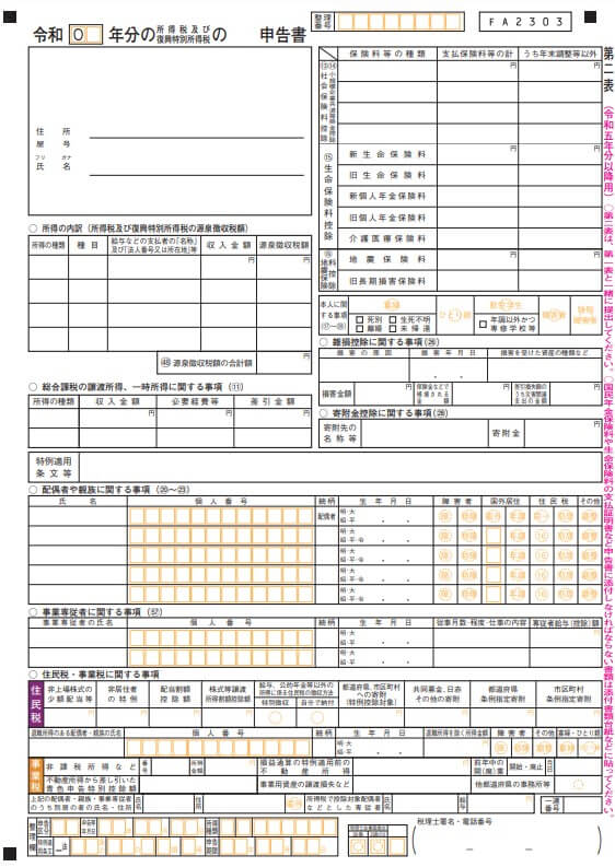 給与所得や事業所得といった総合課税を申告するための確定申告書(第一表及び第二表)も作成します。