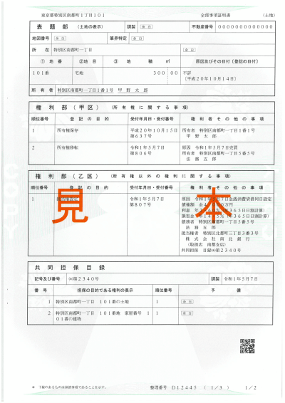 - 甲区:「誰が所有者なのか?」という情報が記載される