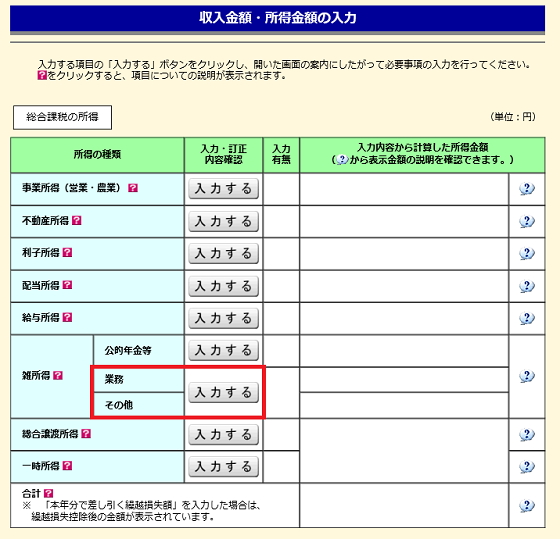 STEP1:「雑所得」⇒「業務(その他)」から入力