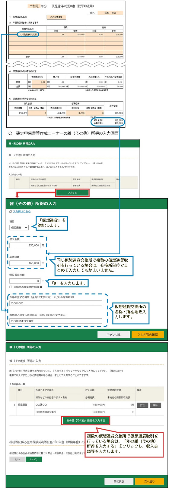 仮想通貨の利益については、原則として、「雑所得(その他)」から入力してください。