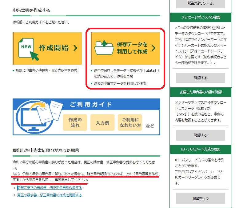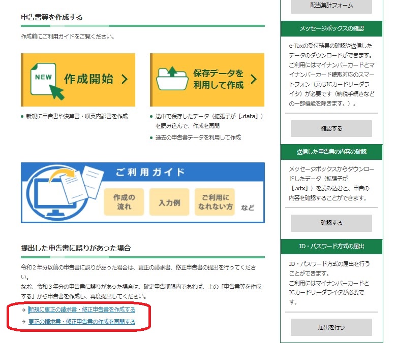 確定申告書作成コーナーで再作成、再送信しましょう。