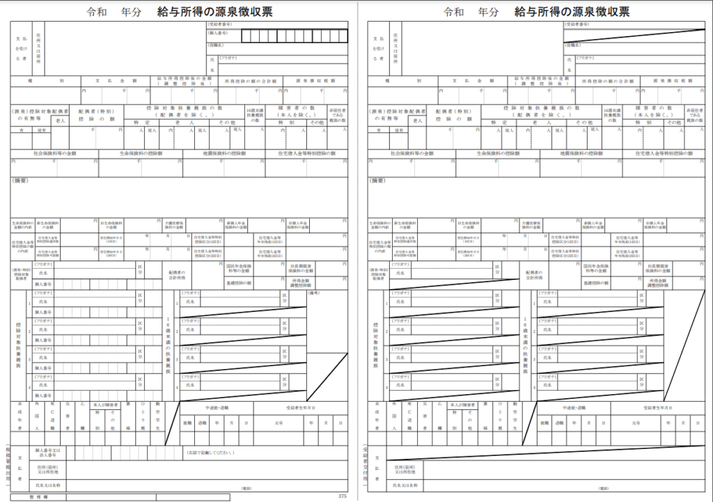 会社役員やその従業員などに1年間に支払った金額を、個人ごとにまとめた帳票です。税務署に提出の必要な源泉徴収票には、以下の2つが存在します。