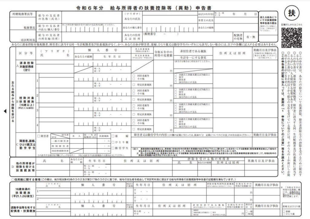 (引用元:令和6年分扶養控除等(異動)申告書(PDF/738KB)|国税庁)