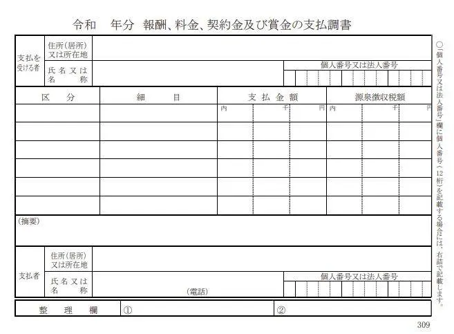 税理士や社労士の報酬等、組織の外部に支払った報酬などを記載する調書です。