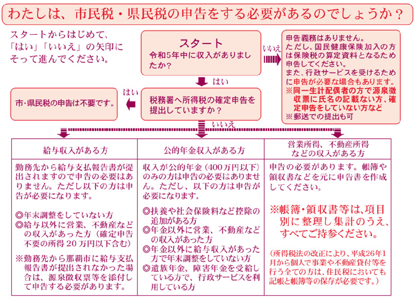 (引用元:那覇市HP『市民税・県民税の申告が必要な方』)