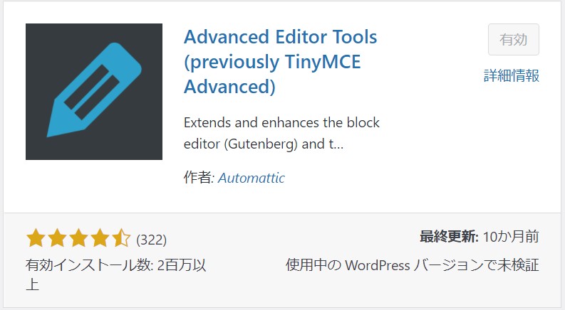 ④Advanced Editor Tools (旧名 TinyMCE Advanced)