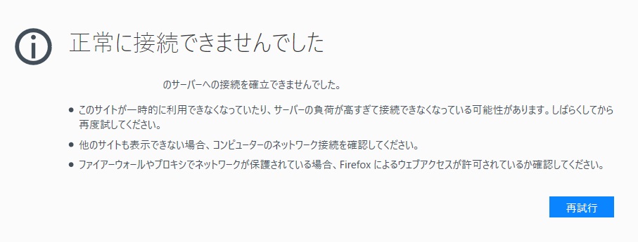 サーバーへの接続を確立できませんでした。