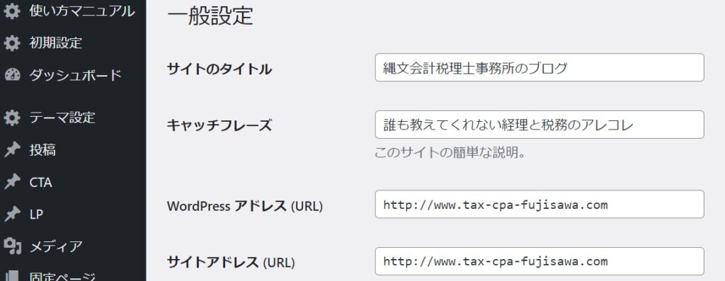 誰もがさわったことがあるWordpressの「一般設定」画面。
