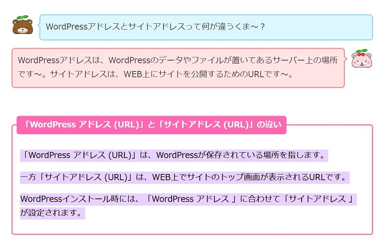 「WordPress アドレス (URL)」と「サイトアドレス (URL)」の違い