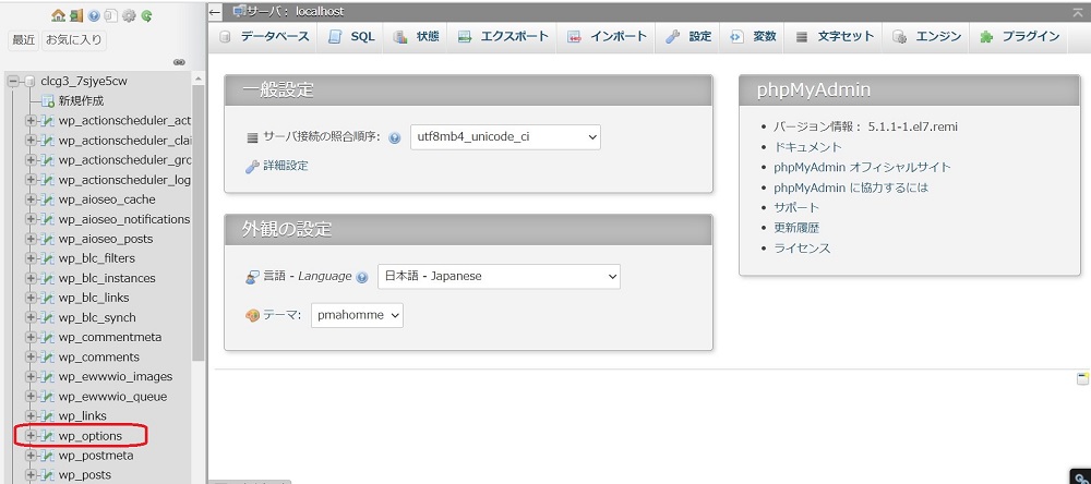 ログインしたら「wp_options」を探してくれ!