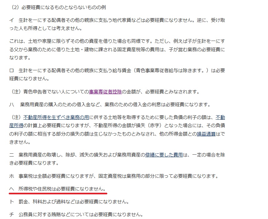 ご覧の通り、所得税は必要経費が認められる税金の中には入ってきません。