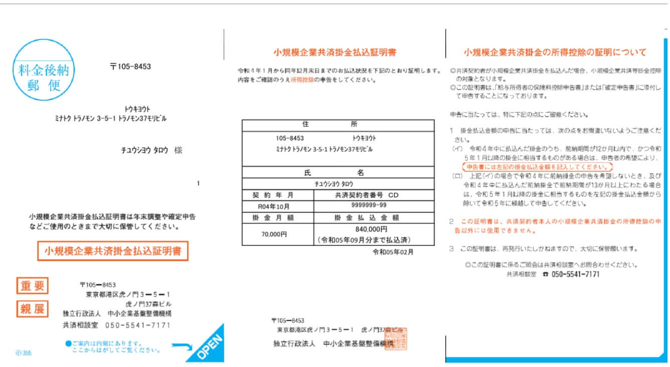 (引用元:令和4年「小規模企業共済掛金払込証明書」について|中小機構)