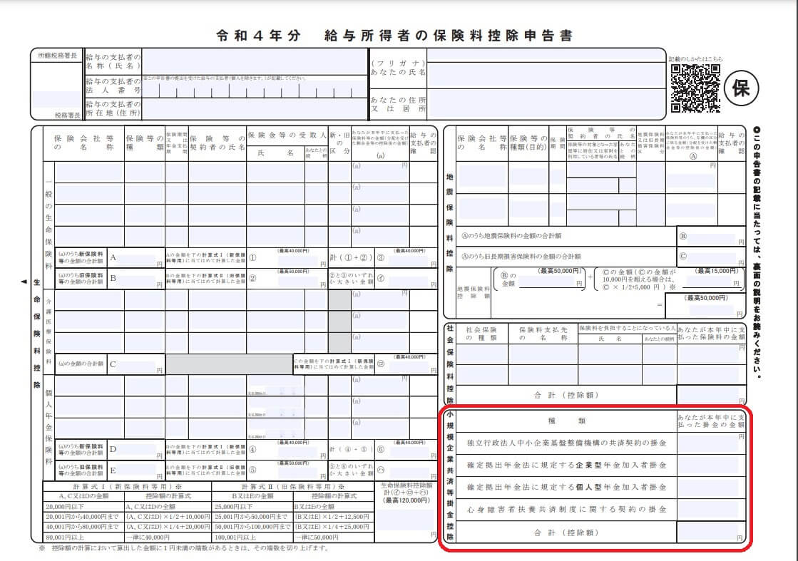 (引用元:令和4年分保険料控除申告書|国税庁)