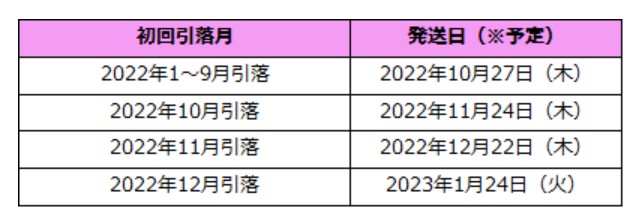 こんな感じ👇(※令和4年2月発送分なので、11月発送のものとは若干デザインが違います)