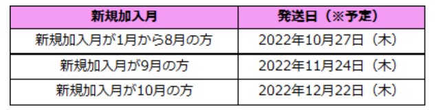 | 払込証明書の発送時期 | 対象者 | お届け先 |