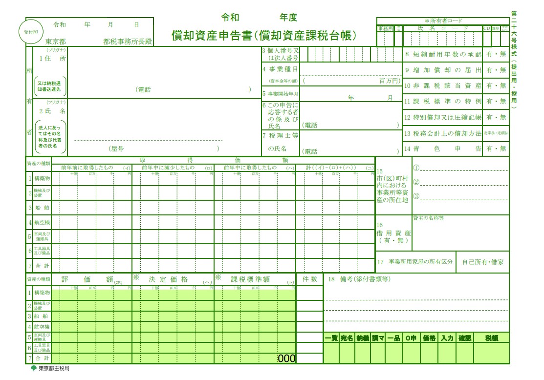(引用元:償却資産申告書(償却資産課税台帳)(第26号様式)一般方式用©東京都主税局