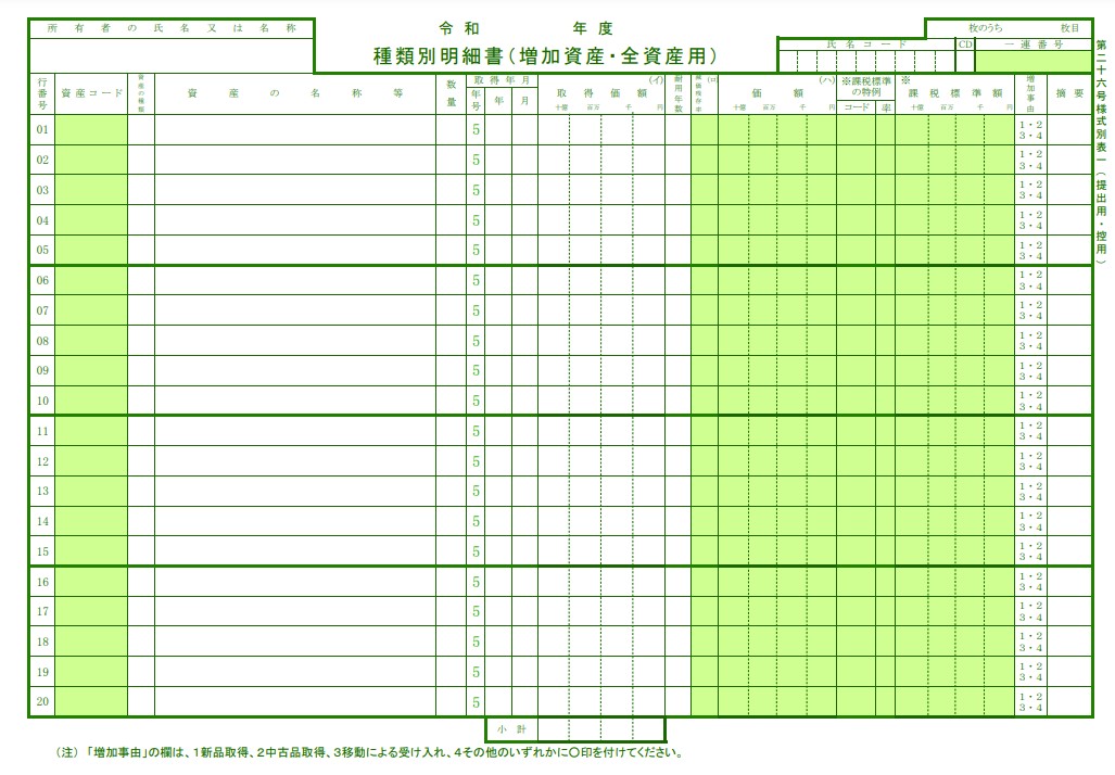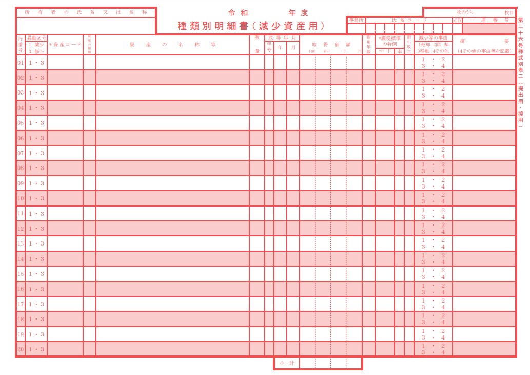 (引用元:種類別明細書(増加資産・全資産用)(第26号様式別表一)一般方式用©東京都主税局