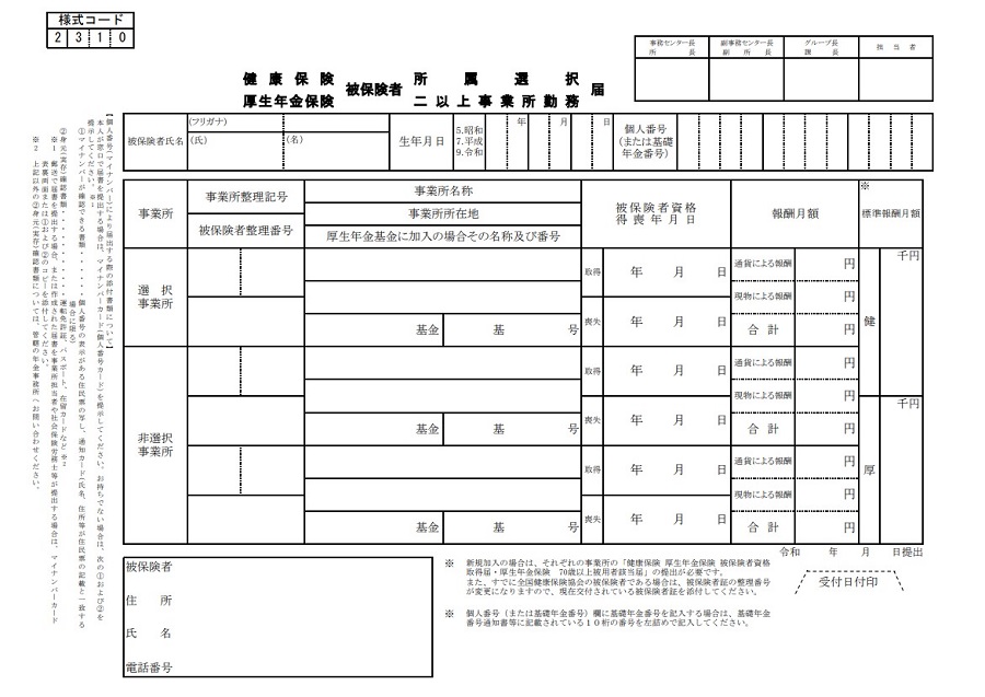 (引用元:健康保険・厚生年金保険 被保険者所属選択/二以上事業所勤務届©日本年金機構)
